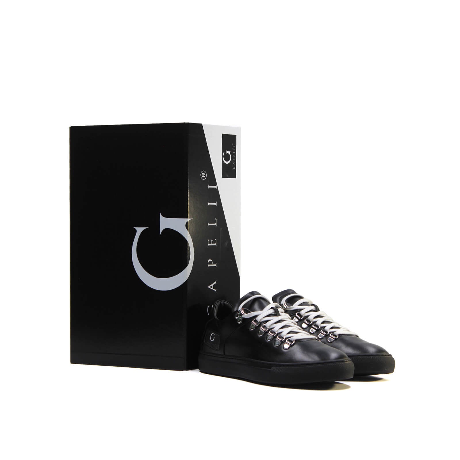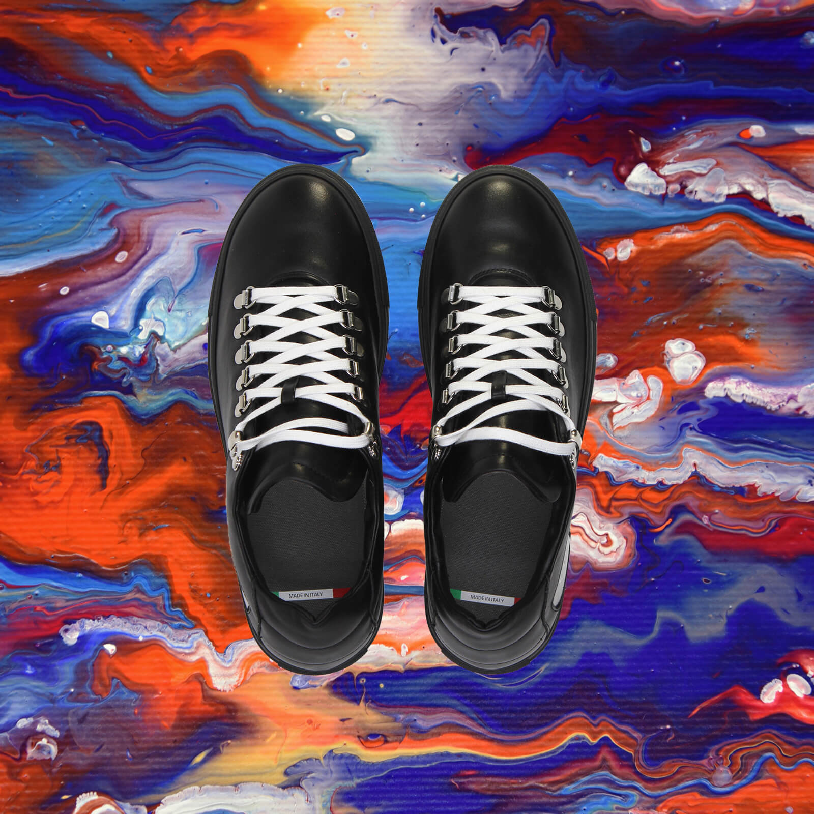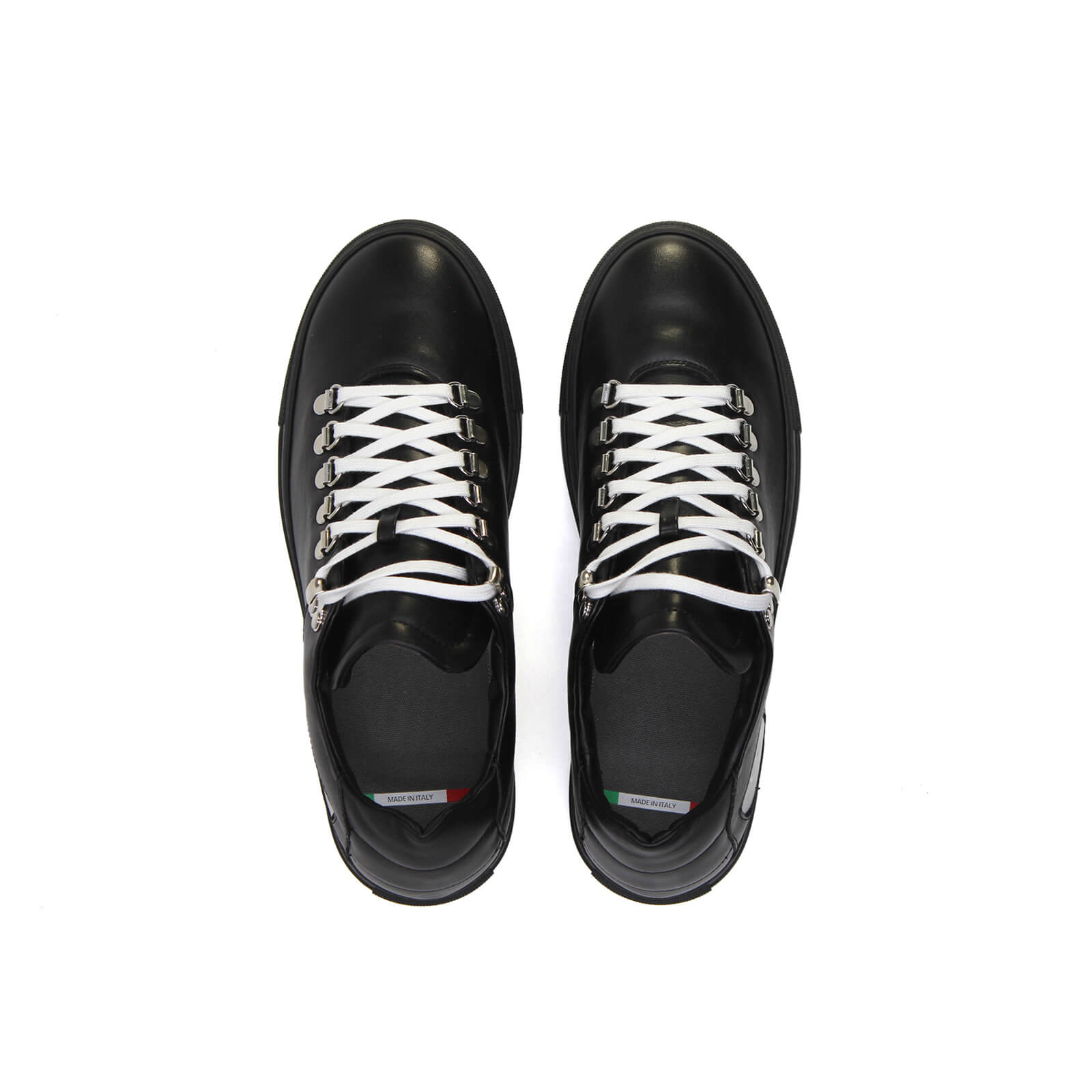 The timelessly classic sneaker gets a style boost. The streamlined and clean upper design is accented by silver metallic lacing hooks and eyelets, inspired by the traditional hiking “pedula”. A strong character that is easily recognizable thanks to the embedded logo on the side. The shoe is crafted in Italy from genuine leather and presents padded heel counter and tongue for extra comfort.