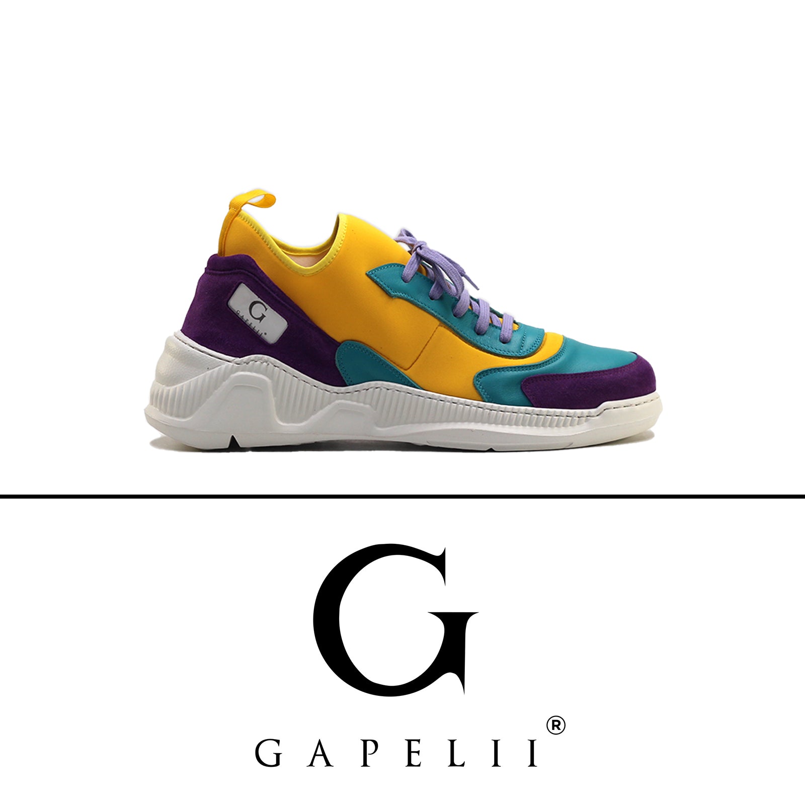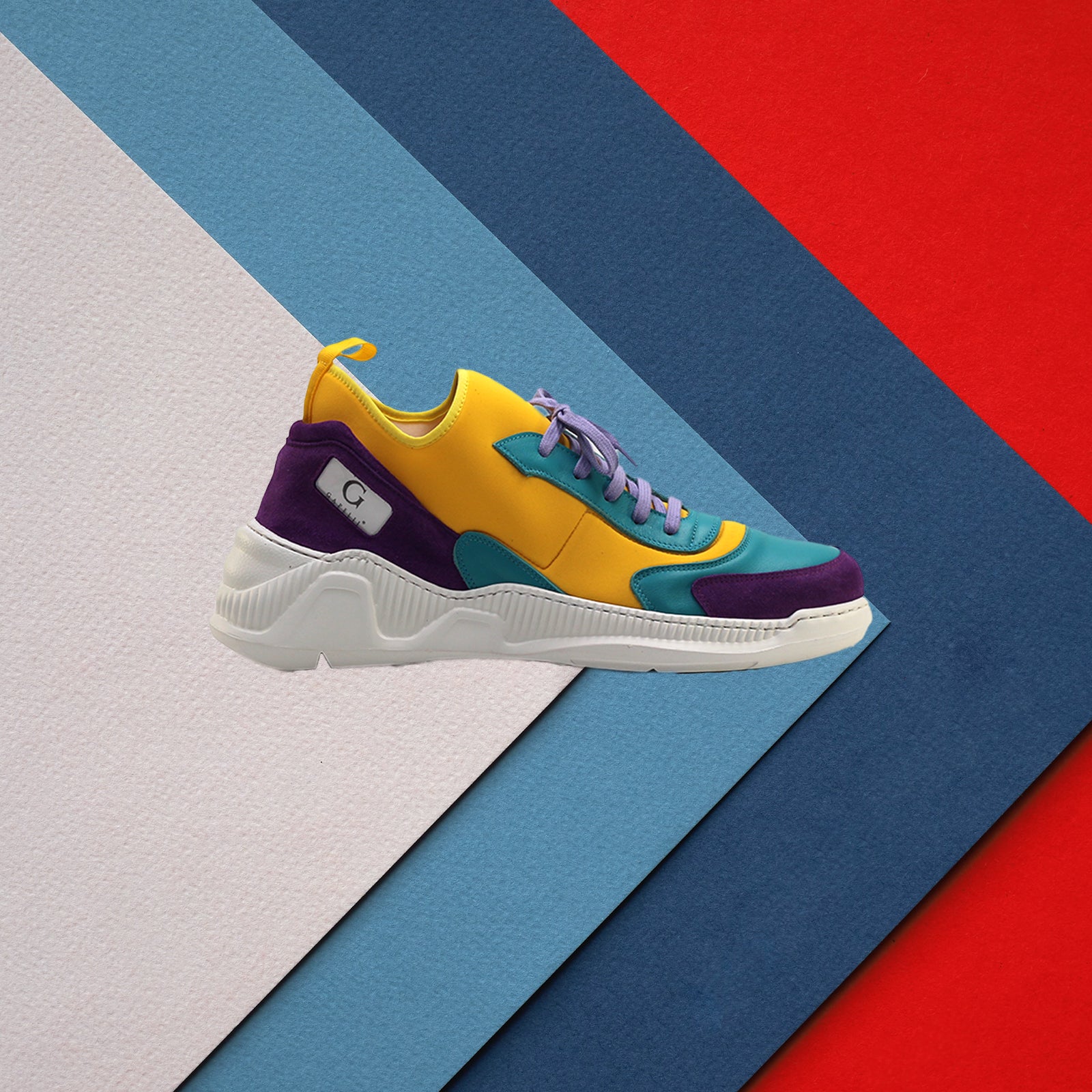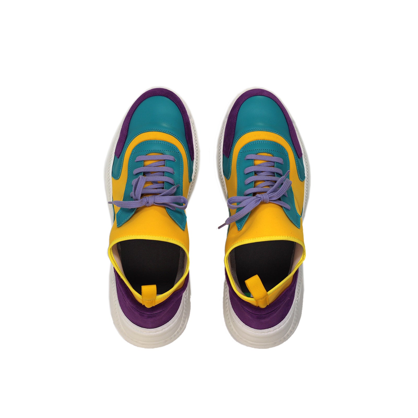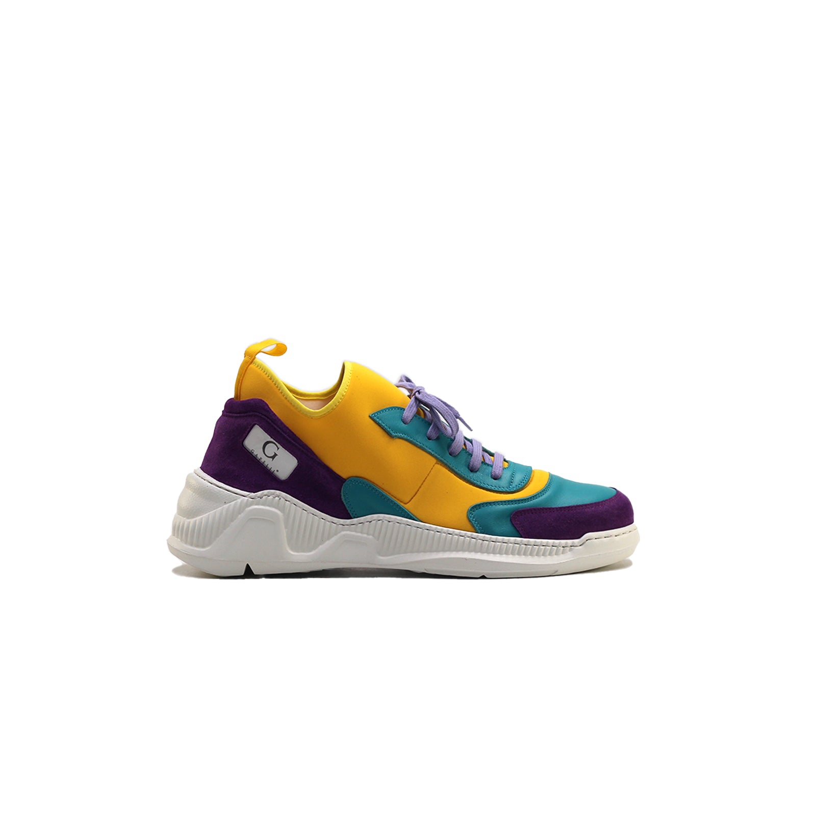 This sneaker perfectly captures the street-style look of the moment. The chunky, sculpted rubber sole provides elevation and style with the shoe. The design is characterized by a lace up front placed over a slip-on silhouette. The upper features scuba fabric and embossed leather inserts, and it is branded with logo on the external side.