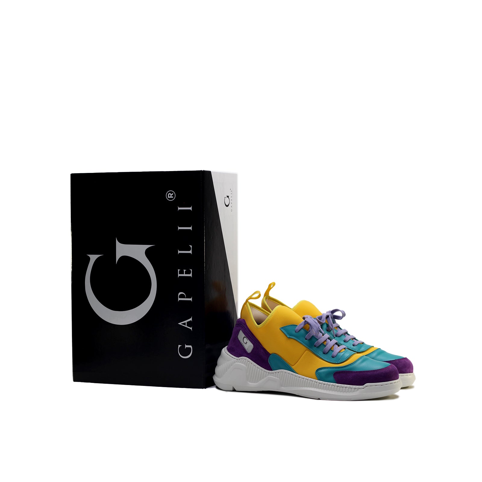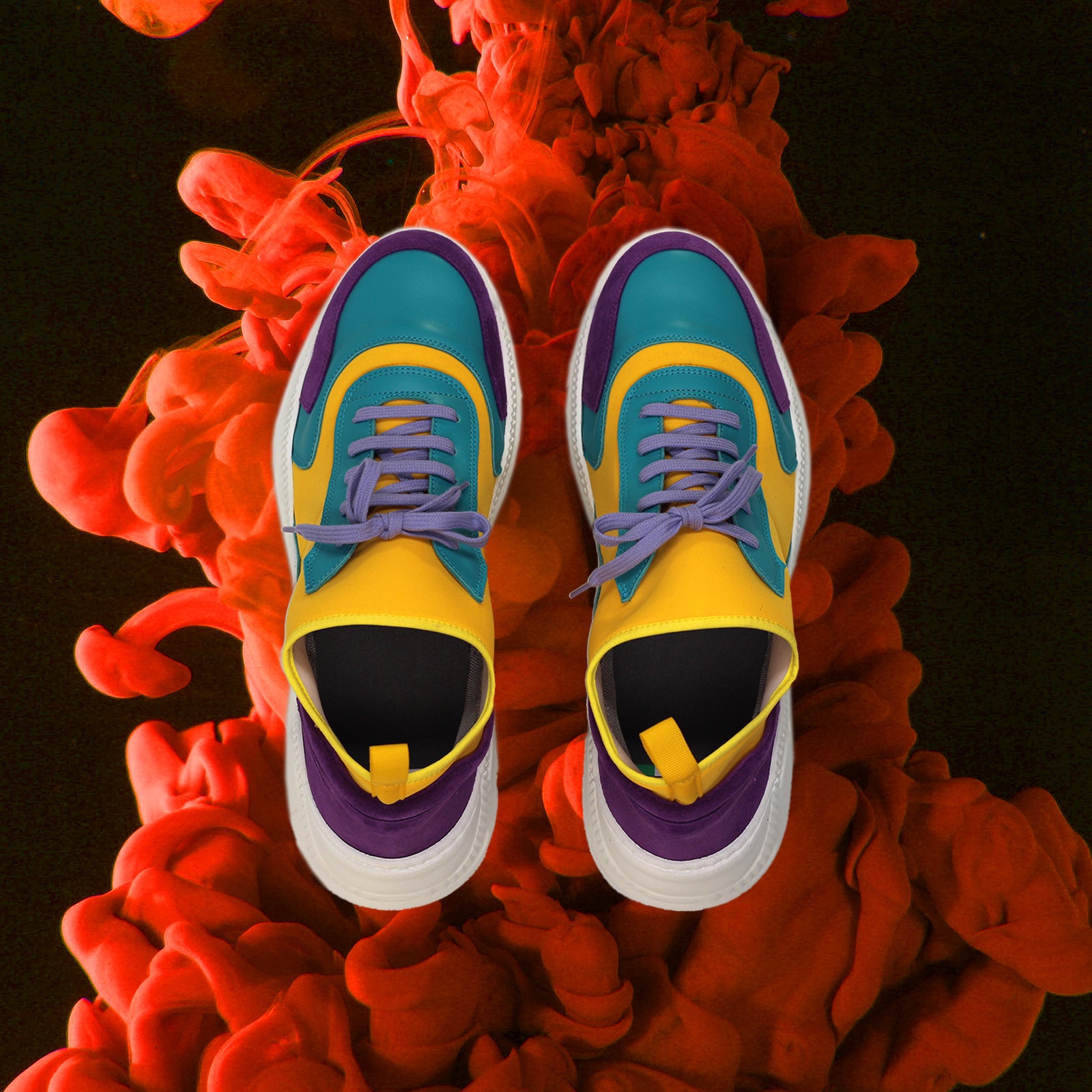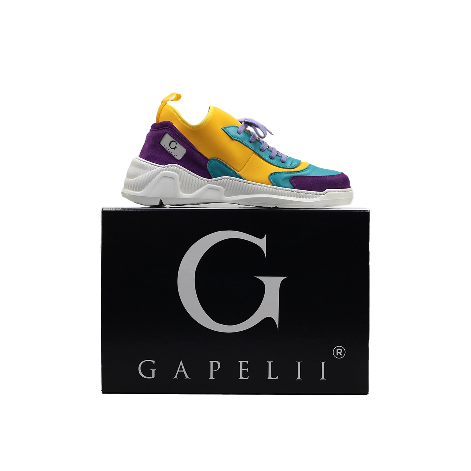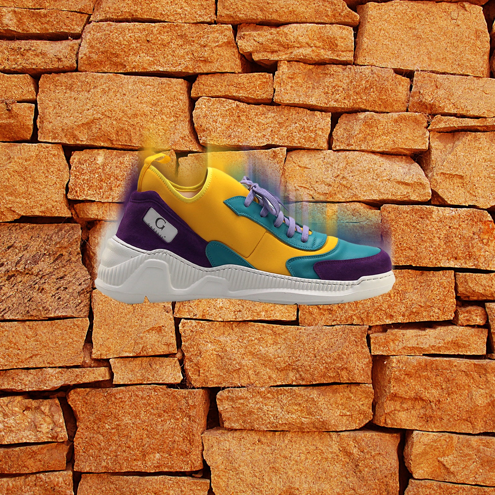 This sneaker perfectly captures the street-style look of the moment. The chunky, sculpted rubber sole provides elevation and style with the shoe. The design is characterized by a lace up front placed over a slip-on silhouette. The upper features scuba fabric and embossed leather inserts, and it is branded with logo on the external side.